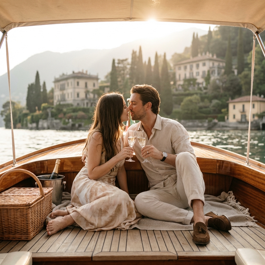 Plan your marriage proposal Lake Como Italy with our Romance Escape — a 2-hour private boat journey across Lake Como’s iconic waters, with floral setup, refined aperitivo on board. Available year-round.