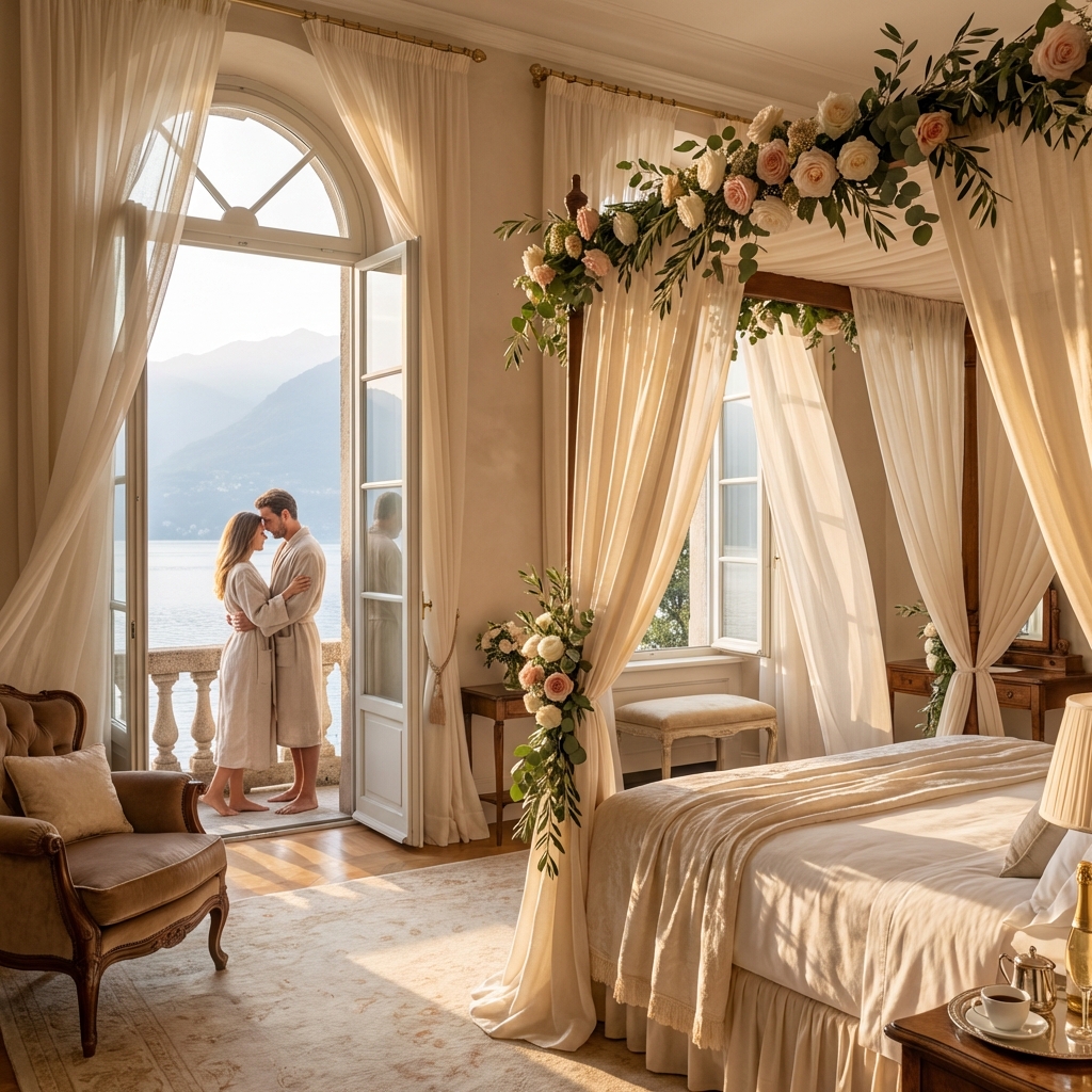 Elevate your villa proposal with our most sought-after additions. Many couples opt for the Chef d’autore experience, transforming your private dinner into a fine dining masterpiece. Arrive in style with an organised private transfer, ensuring a seamless journey to your lakeside retreat. For an extraordinary toast, the Golden Champagne Ritual presents champagne infused with 23 carat gold—a symbol as rare as the moment itself. A private photographer can capture every authentic emotion, whilst live music—a violinist or acoustic set—adds an unforgettable soundtrack. Consider the Signature Scent Moment for ambient fragrance, or the Late Night Indulgence to find sweets and fruit awaiting on your bed.
