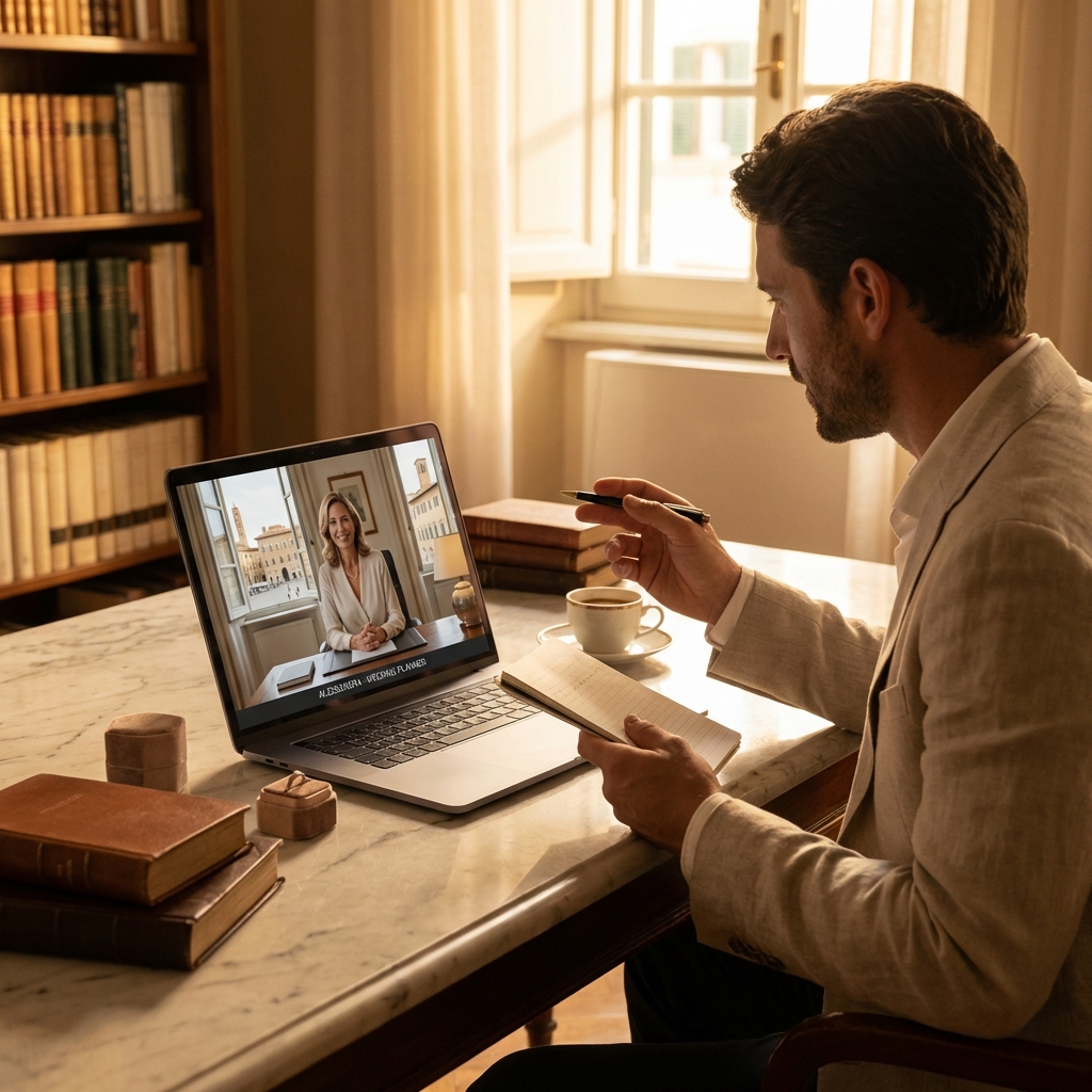 Planning a marriage proposal in Portofino, Italy begins with the right guidance. In sixty focused minutes over video call, Kiss Me Italy’s planners draw on thirty years of Italian expertise to architect every detail of your moment. We discuss the honey-coloured light that pools in the piazzetta at golden hour, the exact stone bench where you might kneel as fishing boats bob in the harbour below, the scent of jasmine drifting from villa gardens. This is not generic advice. This is a bespoke blueprint for the day she remembers forever.